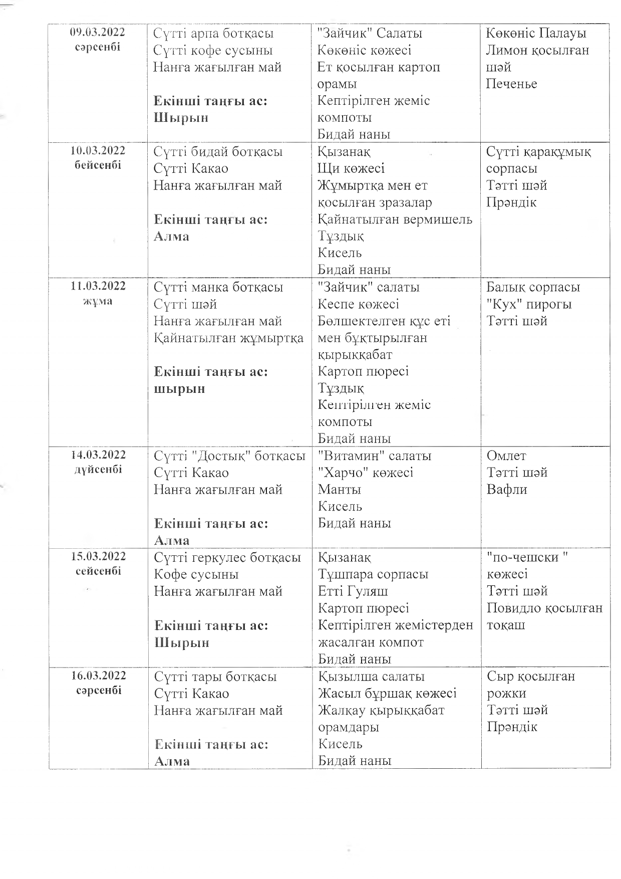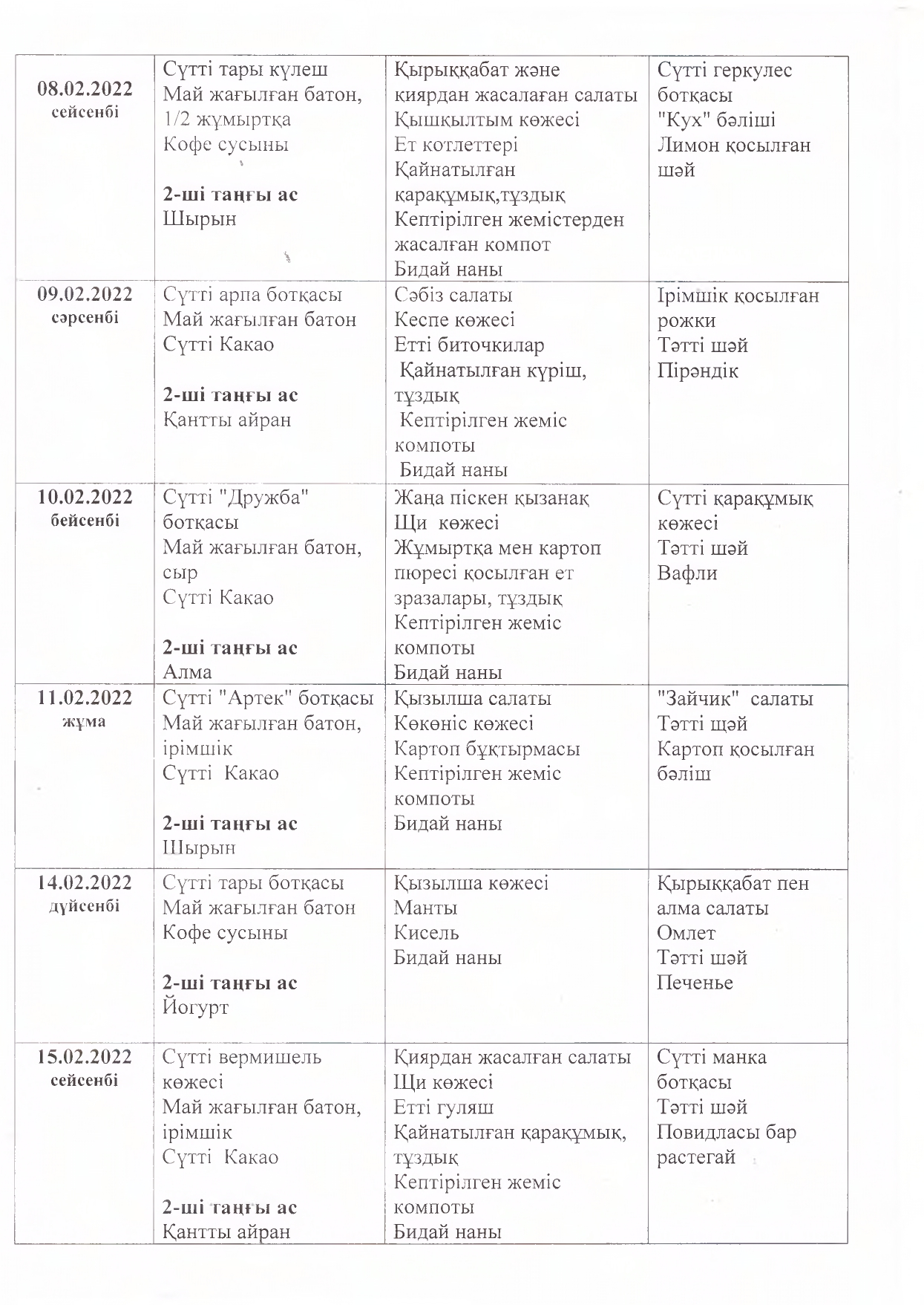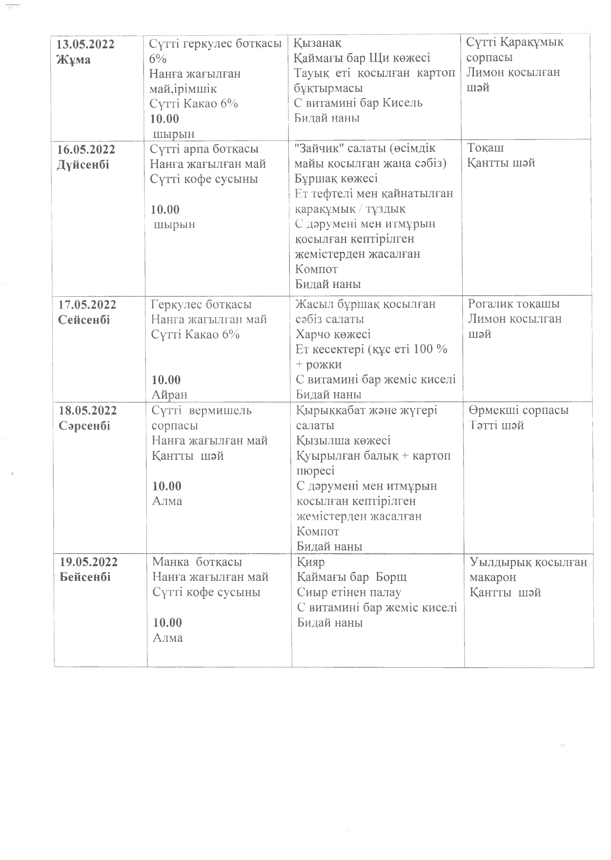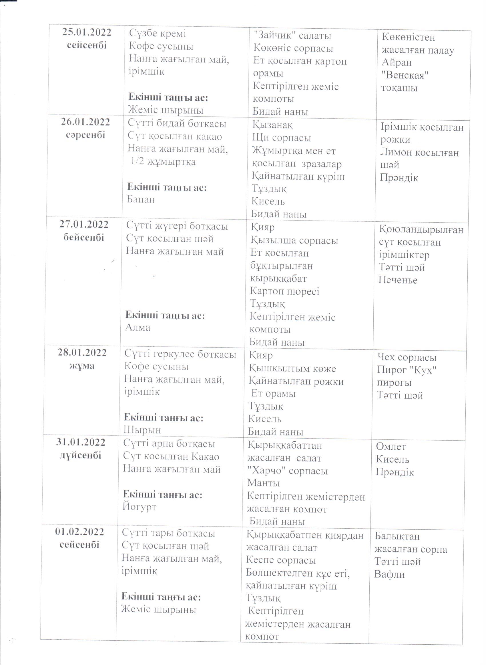 Жұмыс кестесі