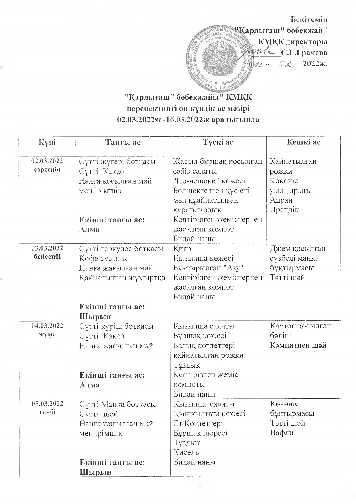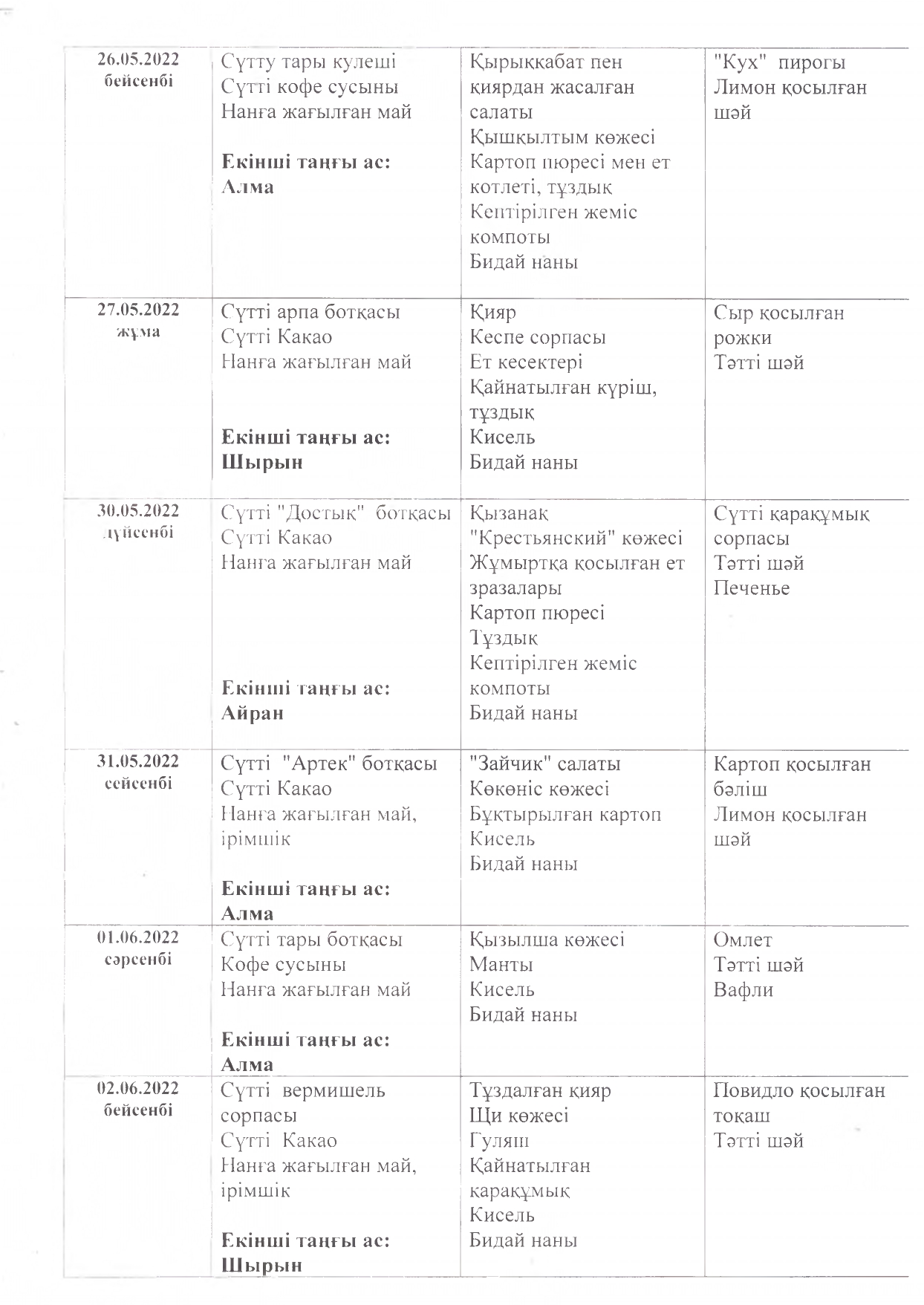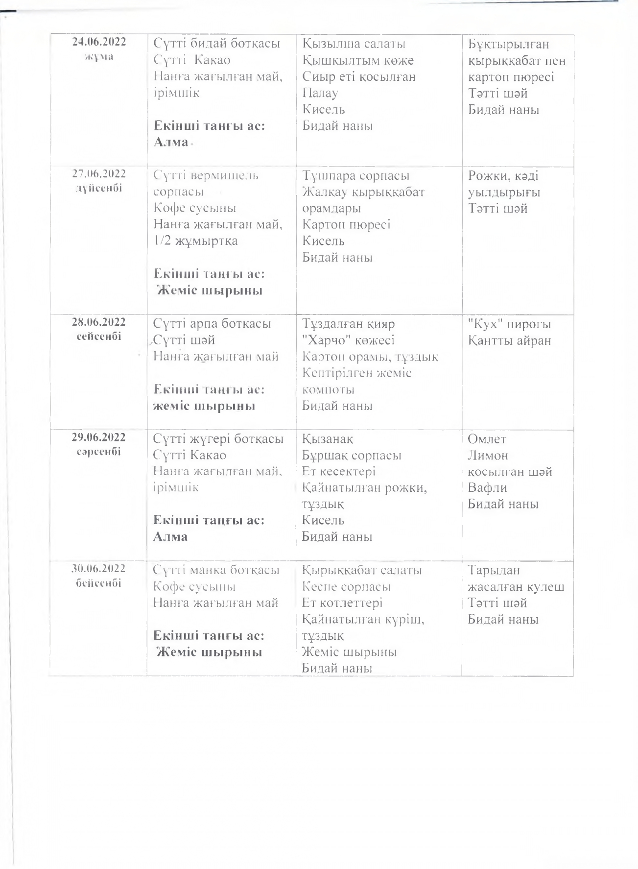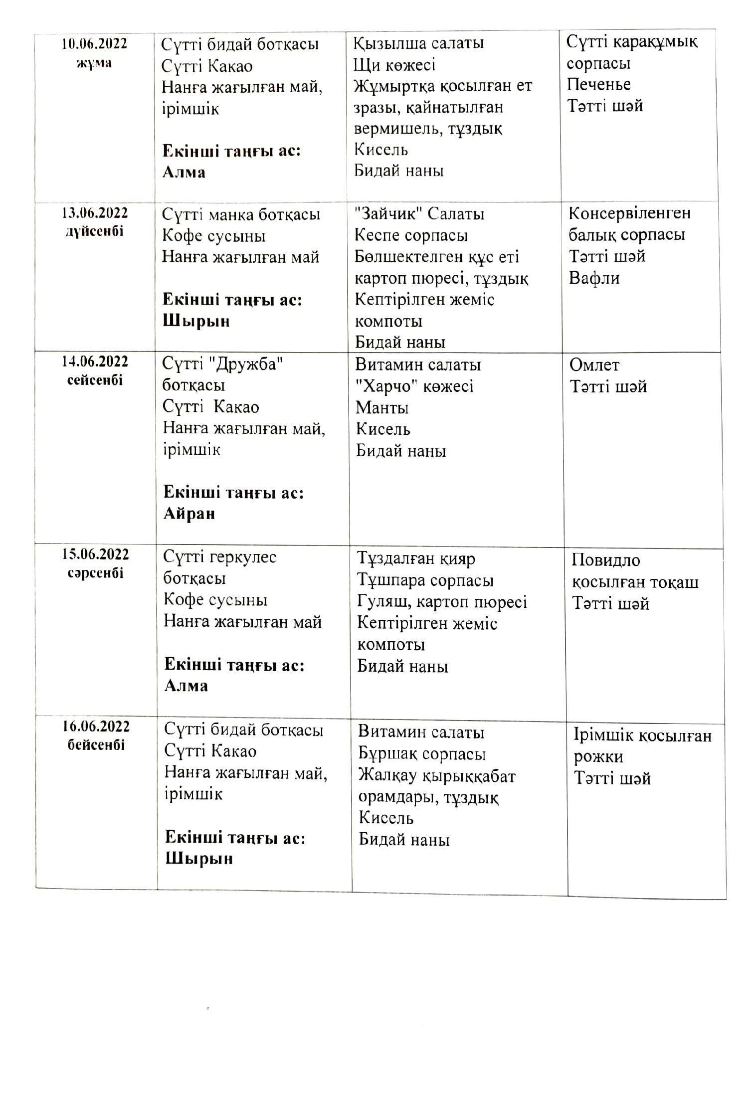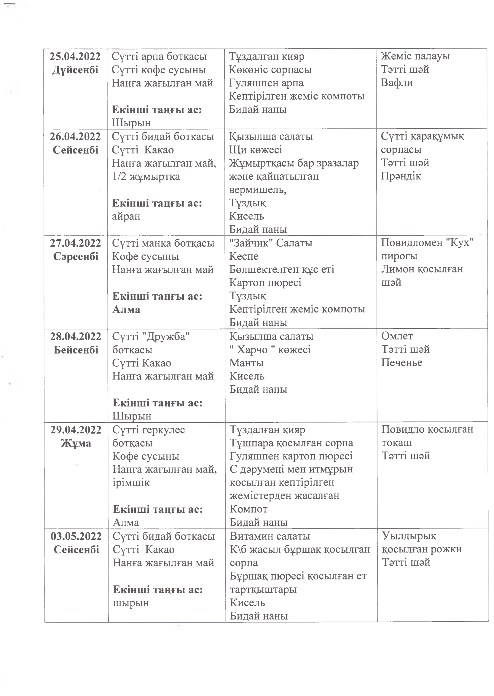 Жұмыс кестесі