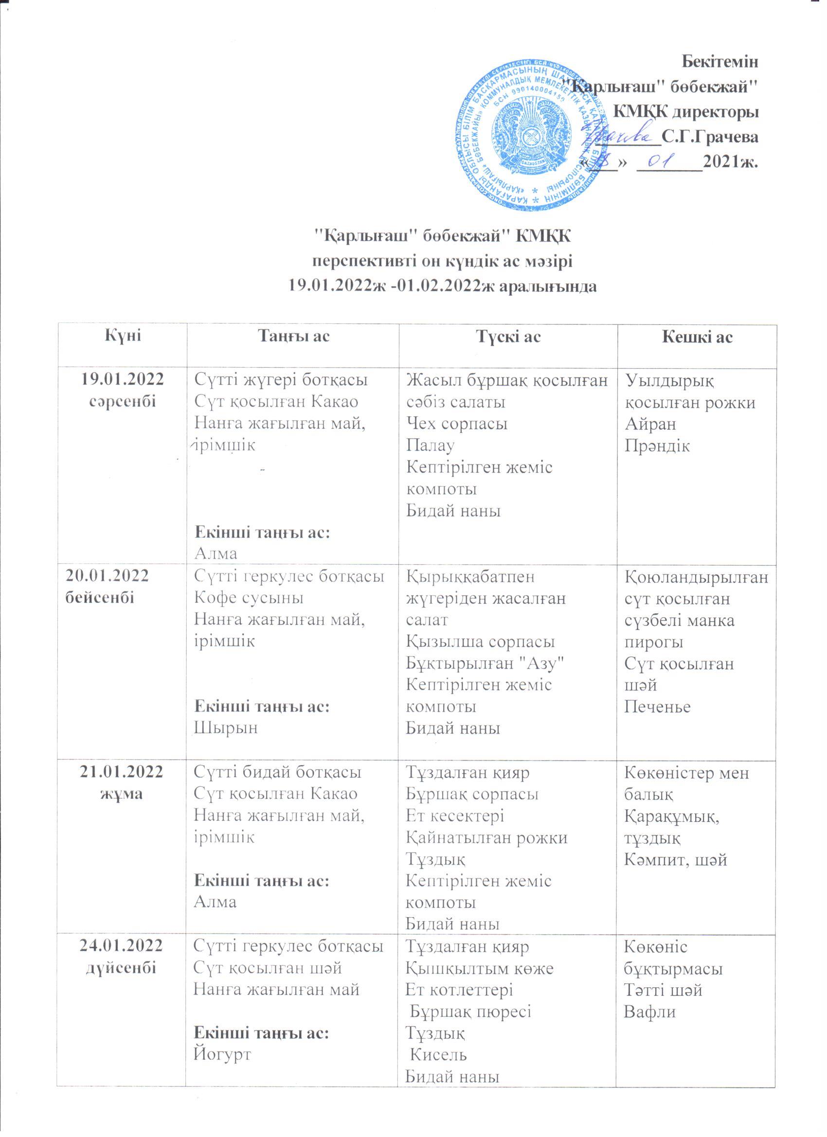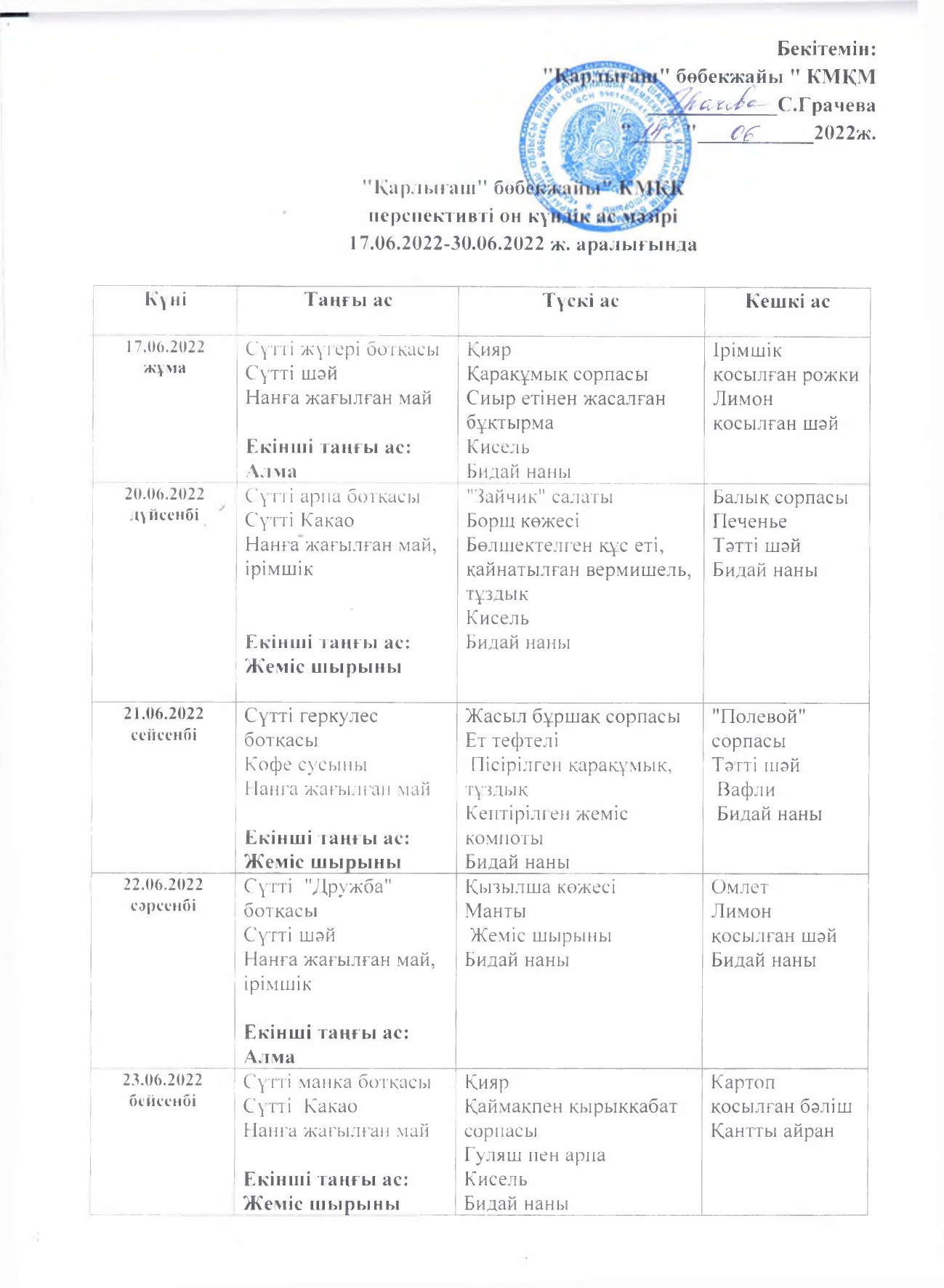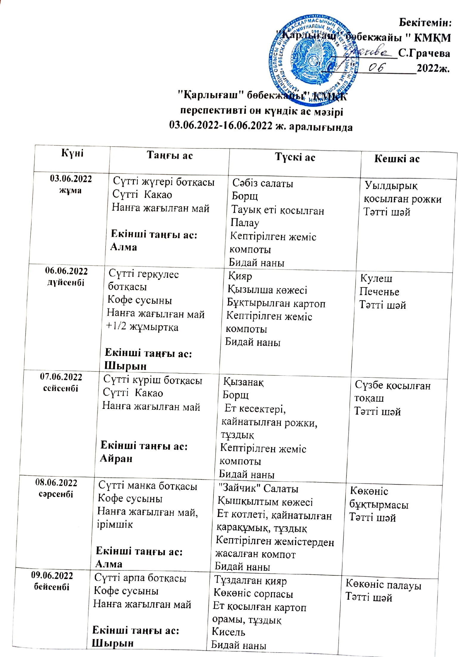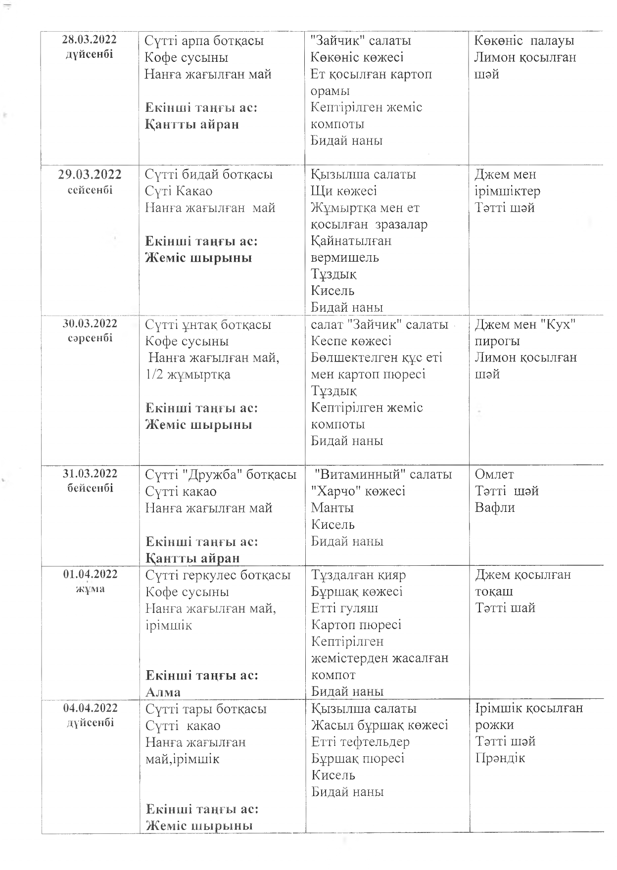 Жұмыс кестесі