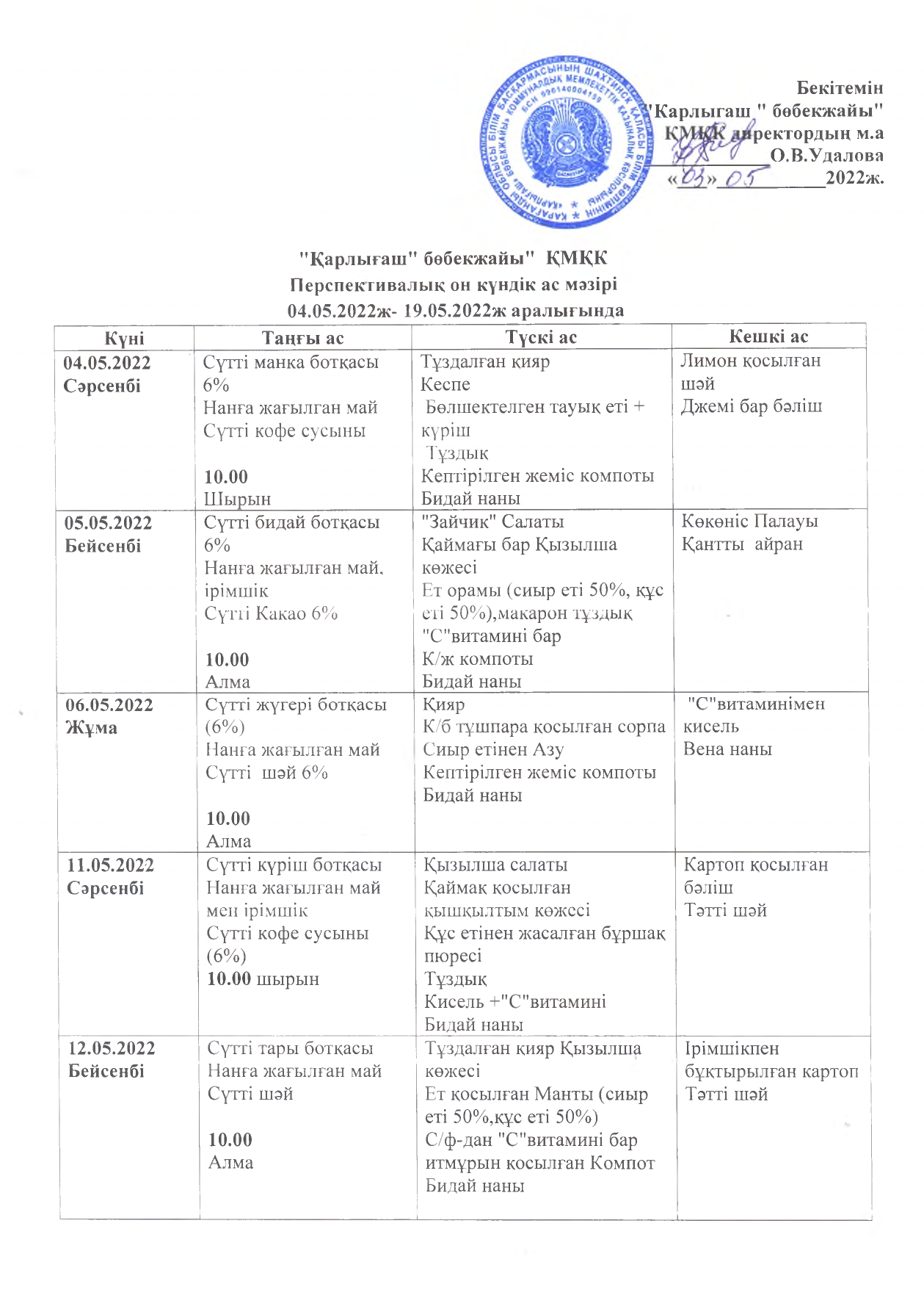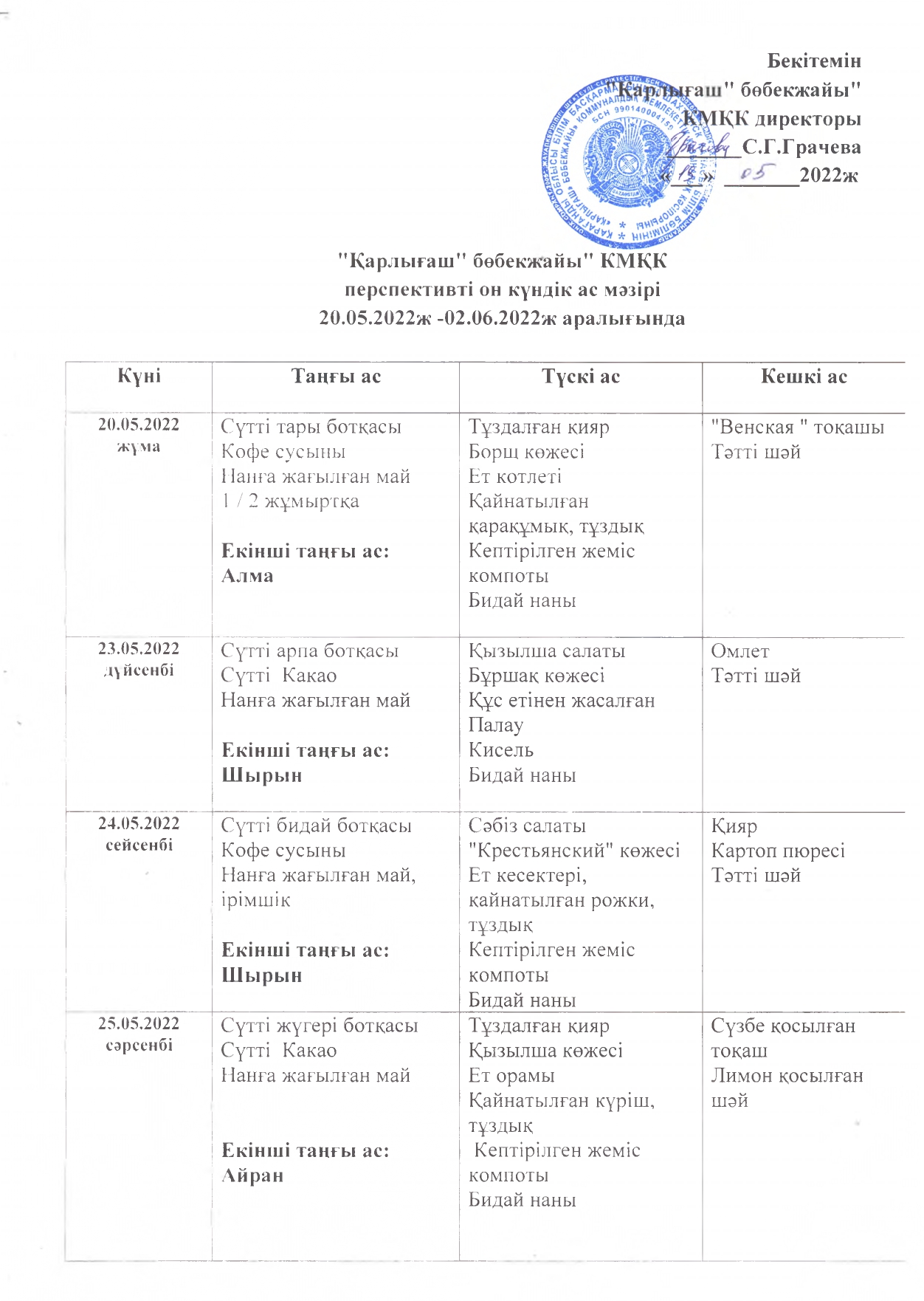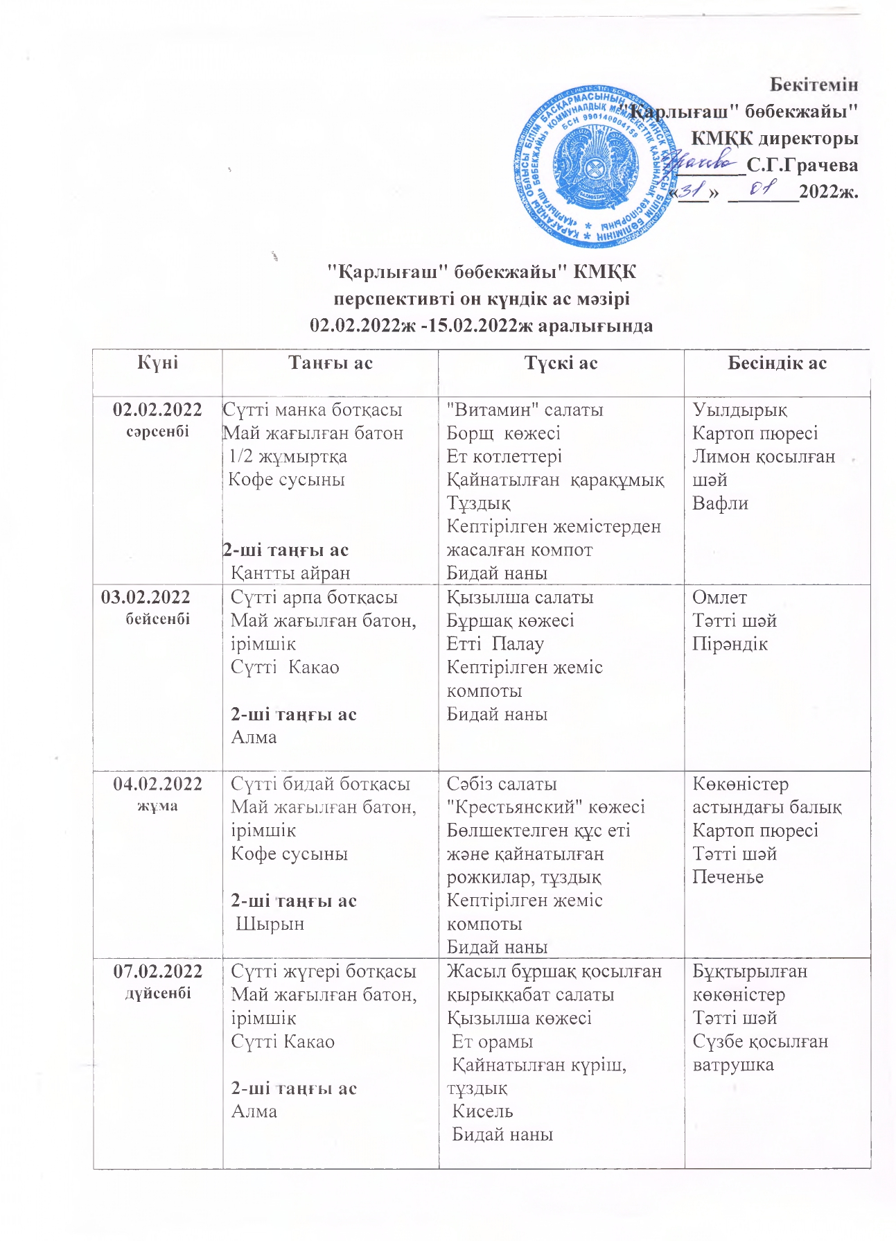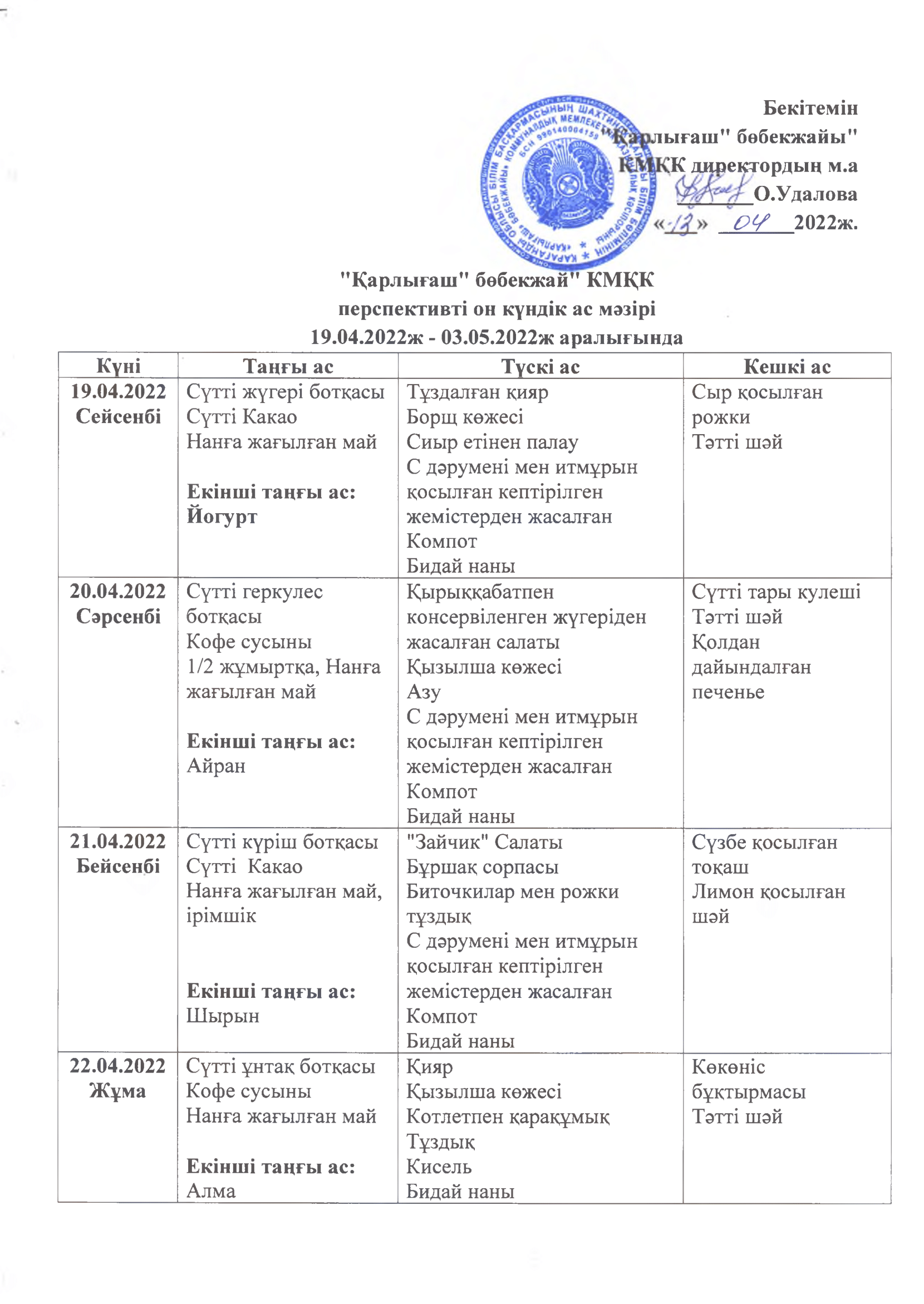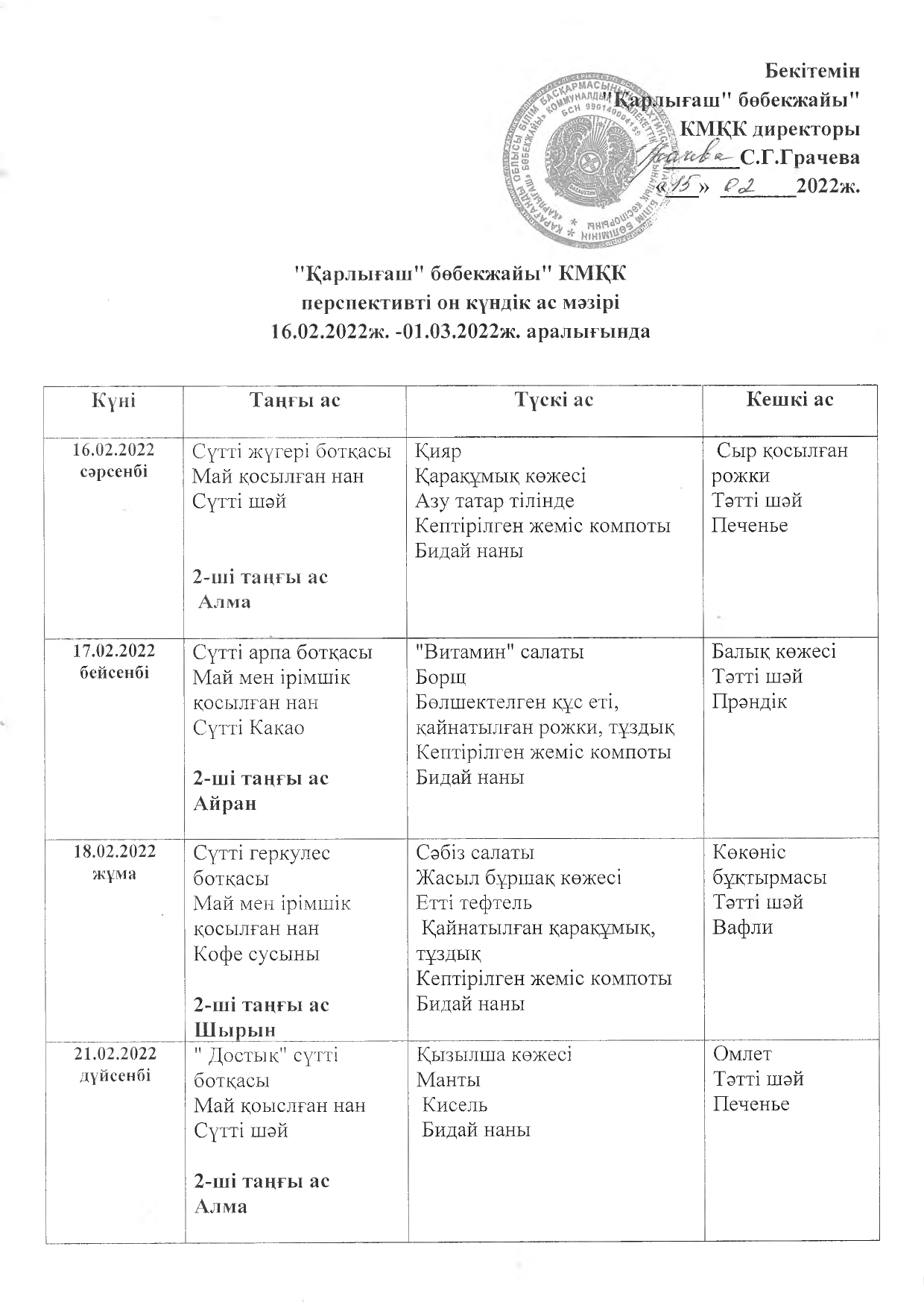 Жұмыс кестесі