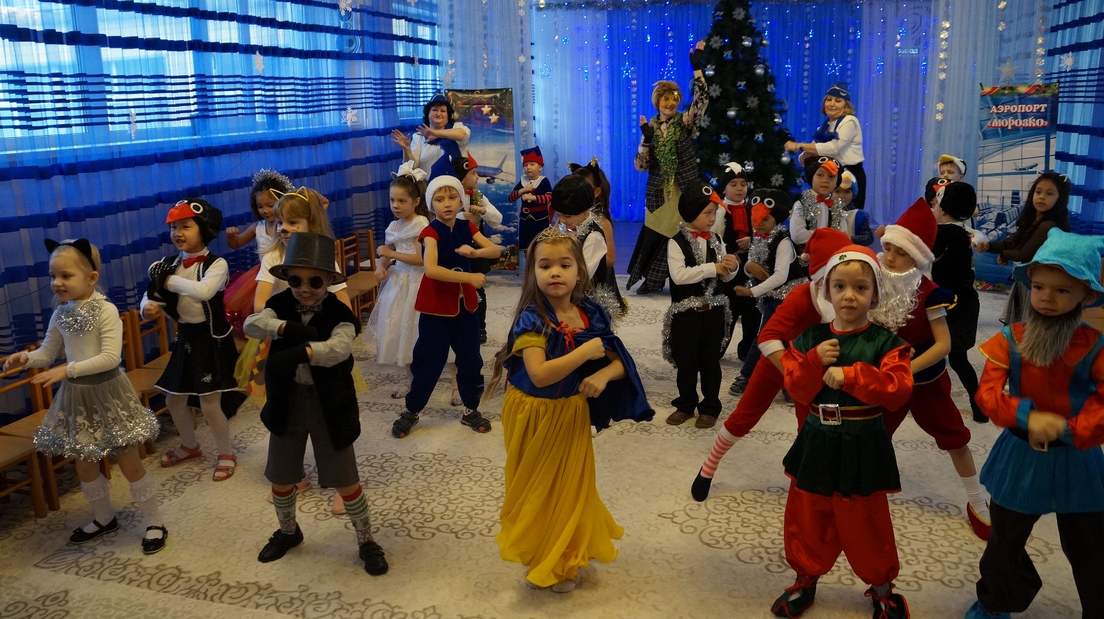 С появлением Деда Мороза начался настоящий праздник с песнями и танцами, хороводами вокруг ёлки. После представления дети читали стихи Деду Морозу и Снегурочке, фотографировались с персонажами, получали новогодние подарки.