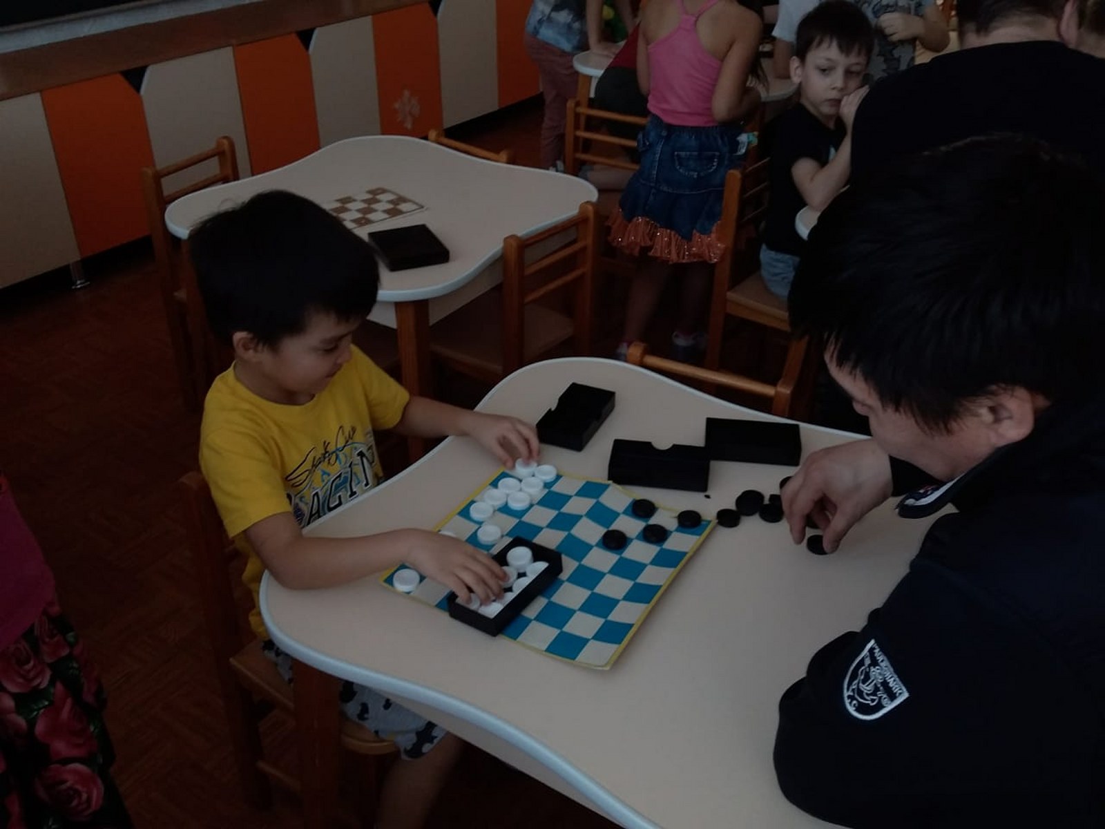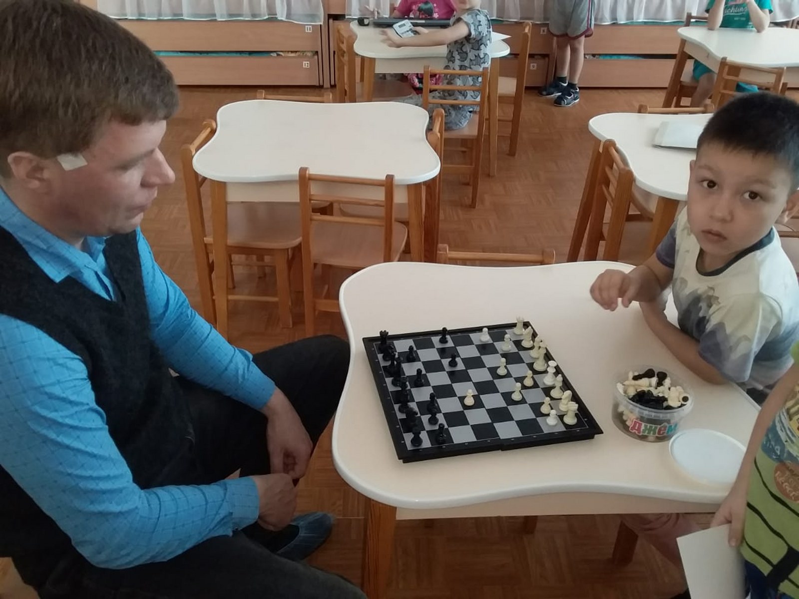 А во вторую половину дня, в вечернем образовательном блоке, воспитателями групп предшкольной подготовки, были организованы шахматные турниры между папами и детьми.