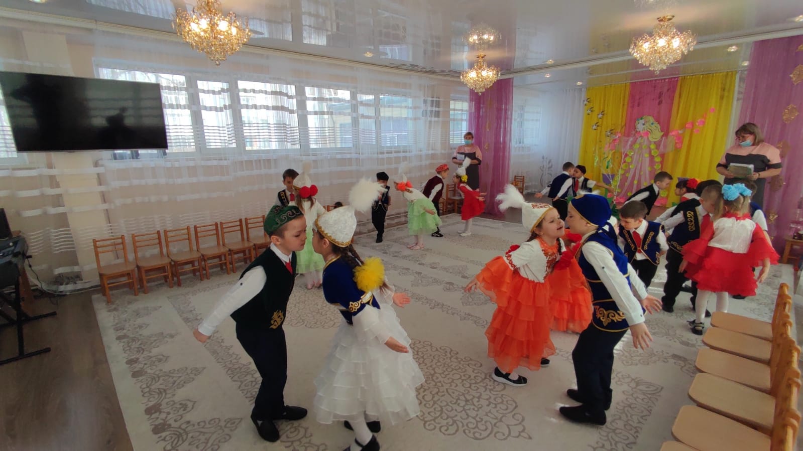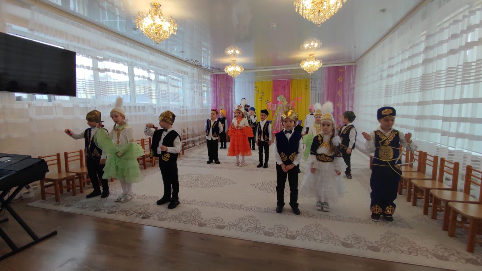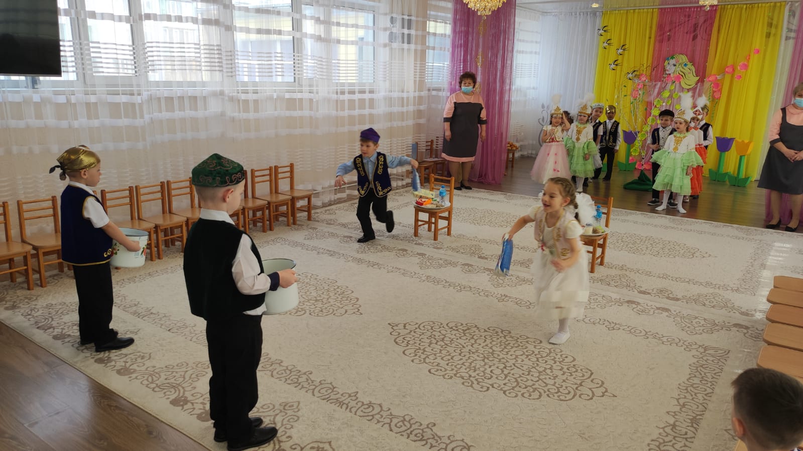 Во время праздника в саду царила атмосфера добра, веселья и радости. Дети познакомились с казахскими традициями и обычаями «Атқа міңгізу тойы», «Шашу», «Қырқынан шығару».